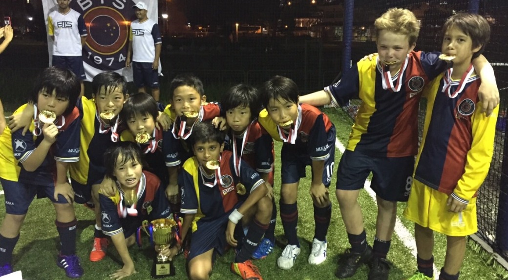 BTS made a successful first international trip by winning the inaugural Asia Youth Cup in Singapore. After a slow start to the 2nd day, BTS needed a win in the final group game against Anusorn of Thailand. The team started playing with more passion and skill and secured a 2-0 win. The semifinal was another 2-0 win and victory meant a chance to become champions. Things did not start too well going one down to an early goal against ASTAM of Indonesia. However an immediate reply with a thunderous strike from Tomoki brought BTS level. Kazuki added a second following up from a shot from Sharv and another Kazuki effort gave BTS an unassailable lead. Some excellent defending by Ryo and some heroic goalkeeping by Nikki meant the trophy was on its way to Hong Kong.